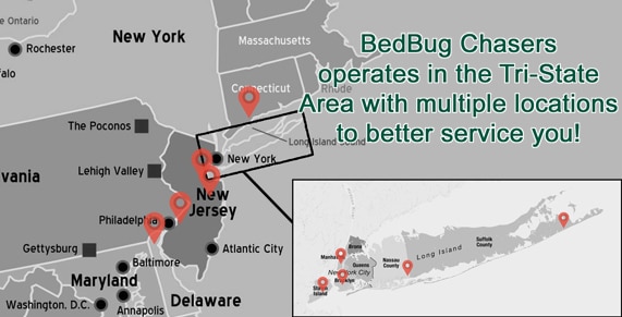 BedBug Chasers of NJ is the Metro NY’s largest and #1 rated experts in bed bugs treatment, bed bug elimination, bed bug removal and bed bug control company. No other bed bug treatment company has what we have – the BedBug Chaser heater! We INVENTED our BED BUG HEATERS and INVENTED our BED BUG HEAT TREATMENT Process plus where we have stores in and continue to grow!